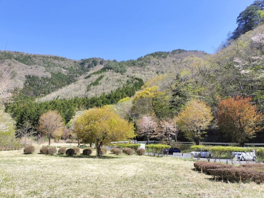 独鈷沢ふれあい公園付近の駐車場。天気が良くスタートから気持ちいい雰囲気でした。