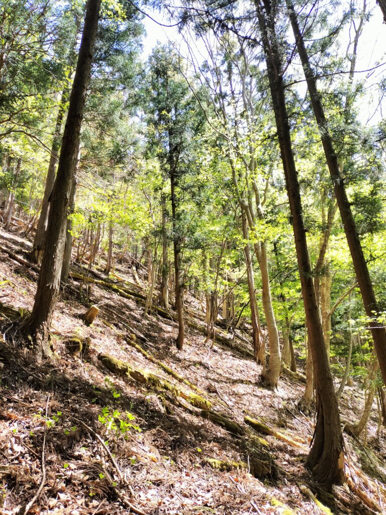 登山口からしばらくは、新緑の中を気持ちよく歩けます。日差しが入り、雰囲気はかなり良いです。