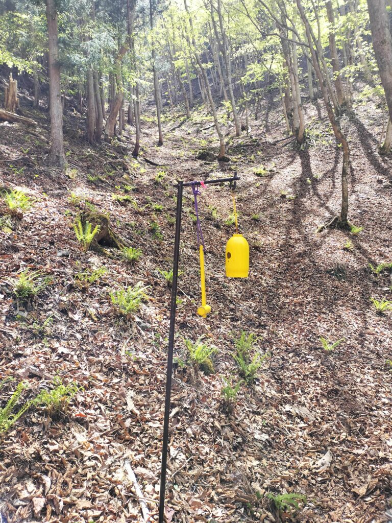 水飲み場と熊鈴がある分岐。ここを右へ進みます。