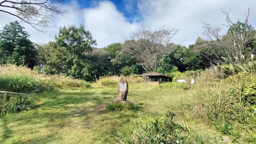 登り始めておよそ20分、御殿平(ごてんだいら)に到着しました。ここはかつて宇都宮氏の支城・多気城(たげじょう)の本丸があった場所で、現在は芝生の広場として整備されています。