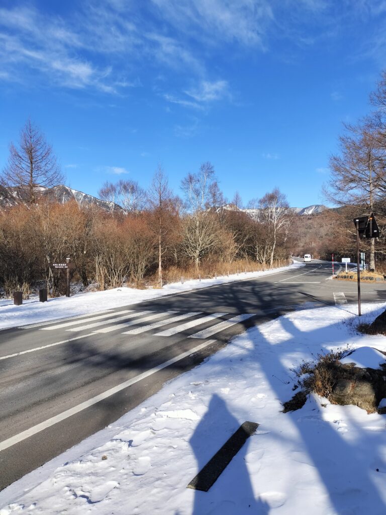 朝9時ごろに三本松(さんぼんまつ)で下車すると、空はよく晴れていて空気が澄んでいました。冬らしい冷たさはありますが、風が弱ければ歩き始めてすぐ体が温まります。公共交通でアクセスできるため、冬道の運転に不安がある人でも計画しやすいのが、戦場ヶ原の大きな魅力だと感じました。