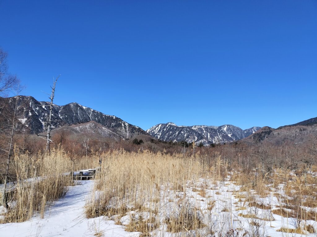雪が少ない年の冬戦場ヶ原は、スノーシュー目的だと物足りなさを感じるかもしれませんが、その分歩きやすく、公共交通でも気軽に訪れやすいのが魅力です。凍結箇所だけ注意すれば、冬ならではの静けさと澄んだ空気を、落ち着いて味わえるトレッキングになります。