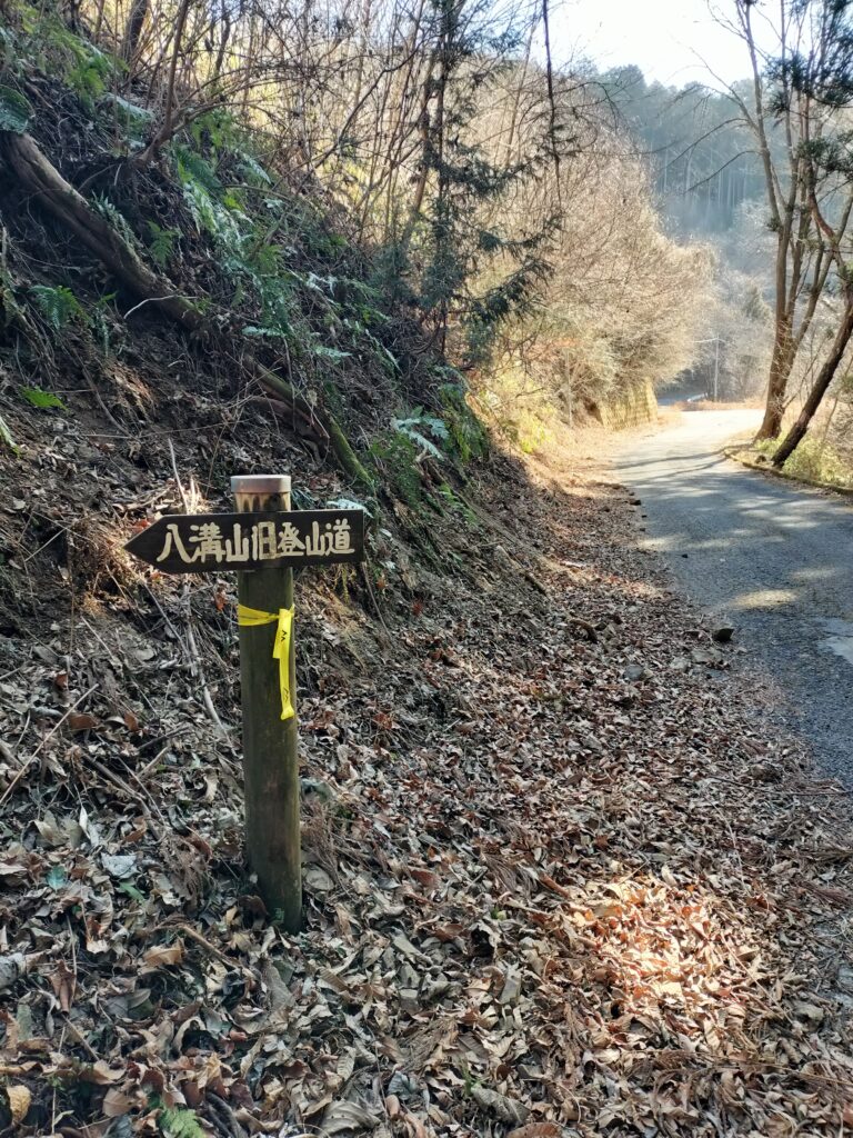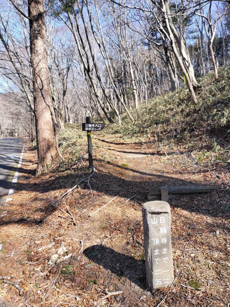 旧登山道を進むと、「日輪寺入口(森林浴コース)」の標識が現れます。今回はこの日輪寺(にちりんじ)コースを進みました。