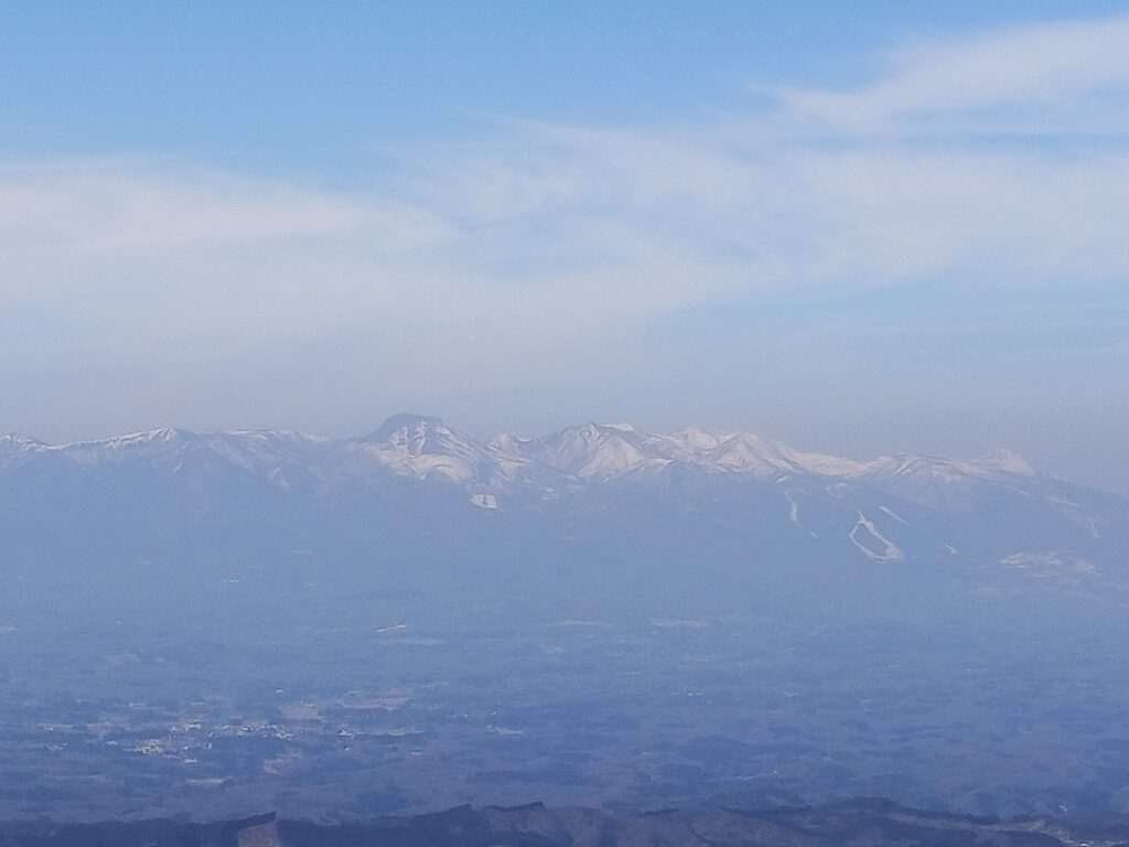 遠望できた那須連峰。雪をまとった稜線が印象的です。